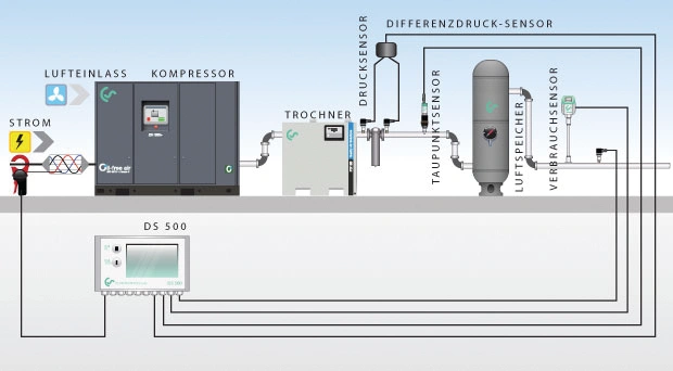 อุปกรณ์ทั้งหมดนี้จะถูกติดตั้งที่จุดกำเนิดลมอัดในห้องคอมเพรสเซอร์ เพื่อให้ได้ภาพรวมของประสิทธิภาพระบบลมอัดอย่างครบถ้วน