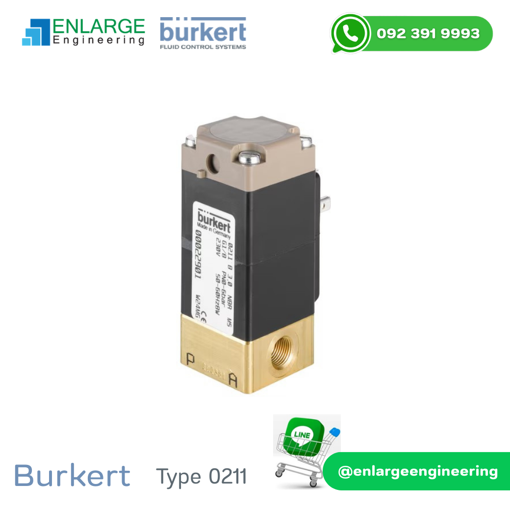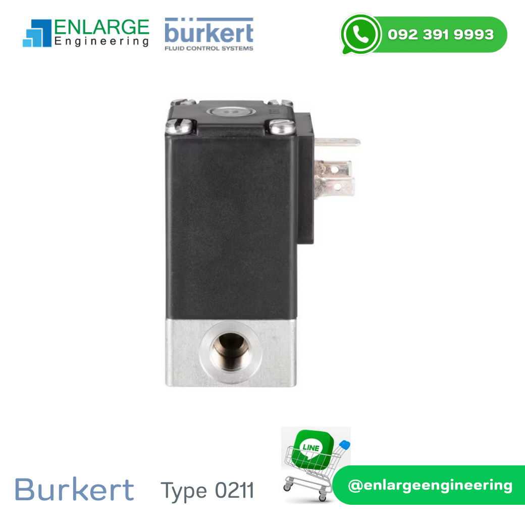 Bürkert Fluid Control Systems Type 0211 เป็นโซลินอยด์วาล์วแบบ 2/2 Way Direct Acting ออกแบบมาสำหรับควบคุมของไหล เช่น น้ำ ลม และของไหลทั่วไปในระบบอุตสาหกรรม ตัววาล์วมีโครงสร้างกะทัดรัด แข็งแรง ทนแรงดันได้ดี และเหมาะสำหรับงานที่ต้องการความแม่นยำสูง