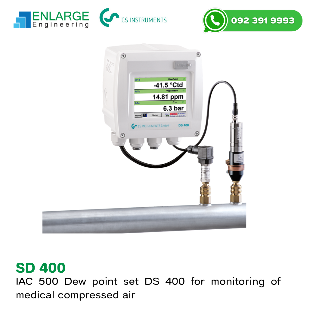 Dew Point Set DS-400 จาก CS Instruments คือชุดเครื่องมือสำหรับ ตรวจวัดค่า Dew Point แบบติดตั้งถาวรในระบบลมอัดและ dryer อุตสาหกรรม เหมาะสำหรับการเฝ้าติดตามคุณภาพอากาศหลังระบบทำแห้ง (ทั้ง refrigeration และ adsorption dryer) โดยแสดงผลแบบเรียลไทม์และมีฟังก์ชันแจ้งเตือนเมื่อค่าผิดพิสัยที่กำหนดไว้ ทำให้คุณสามารถป้องกันการควบแน่นและควบคุมคุณภาพลมอัดได้อย่างมีประสิทธิภาพ ดูข้อมูลจากผู้ผลิต}