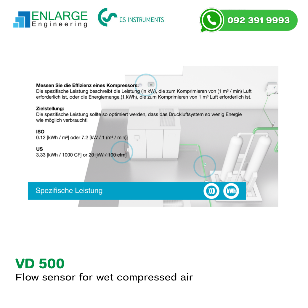 VD 500 Flow Meter จาก CS Instruments คือเครื่องมือวัดอัตราการไหลของลมอัด (Compressed Air Flow Meter) ที่ออกแบบมาสำหรับการวัดค่า FAD (Free Air Delivery) อย่างแม่นยำ ช่วยให้โรงงานสามารถวิเคราะห์การใช้พลังงาน ตรวจสอบการรั่วไหล และเพิ่มประสิทธิภาพระบบลมอัดได้อย่างมีประสิทธิผล