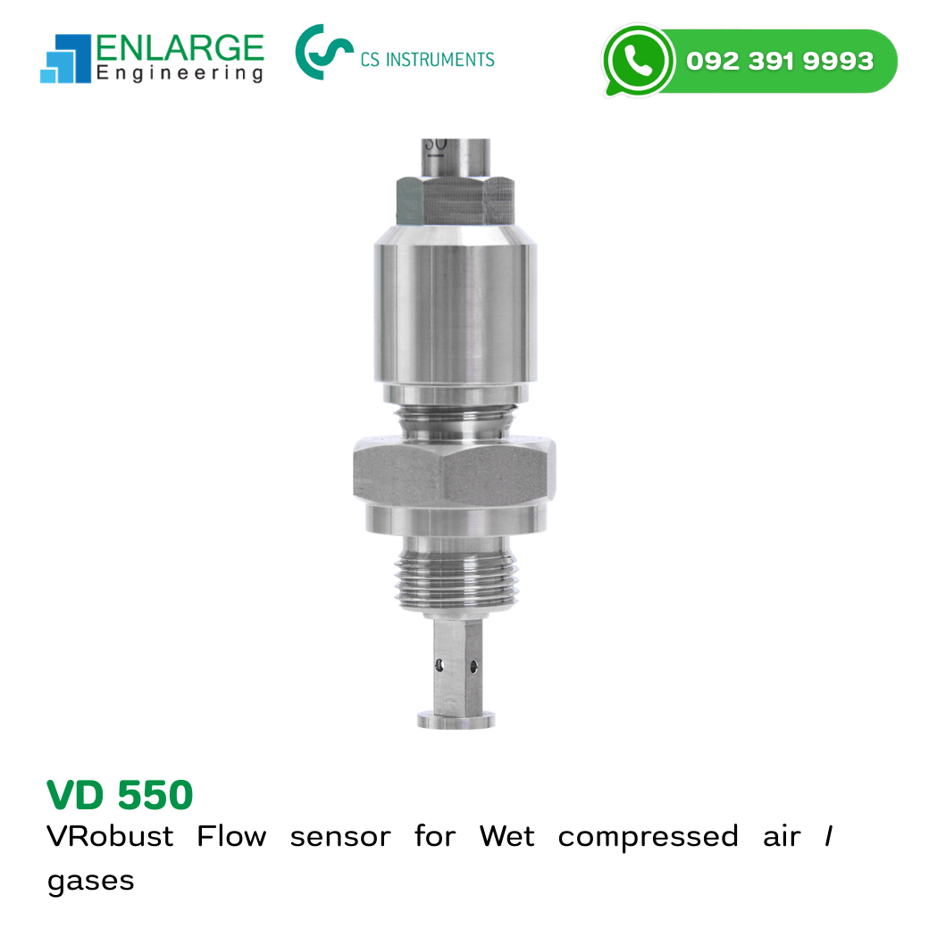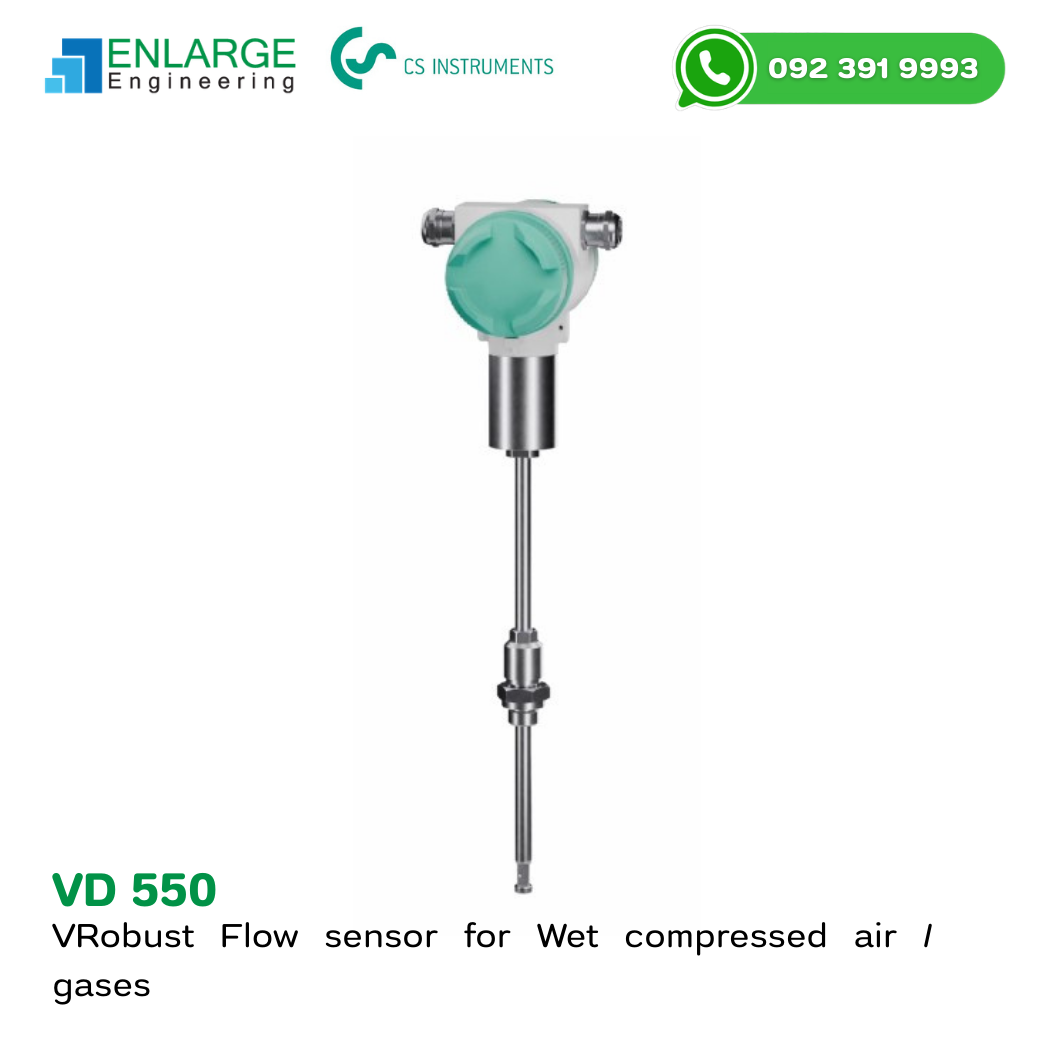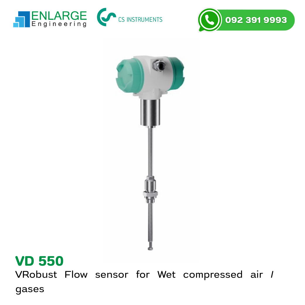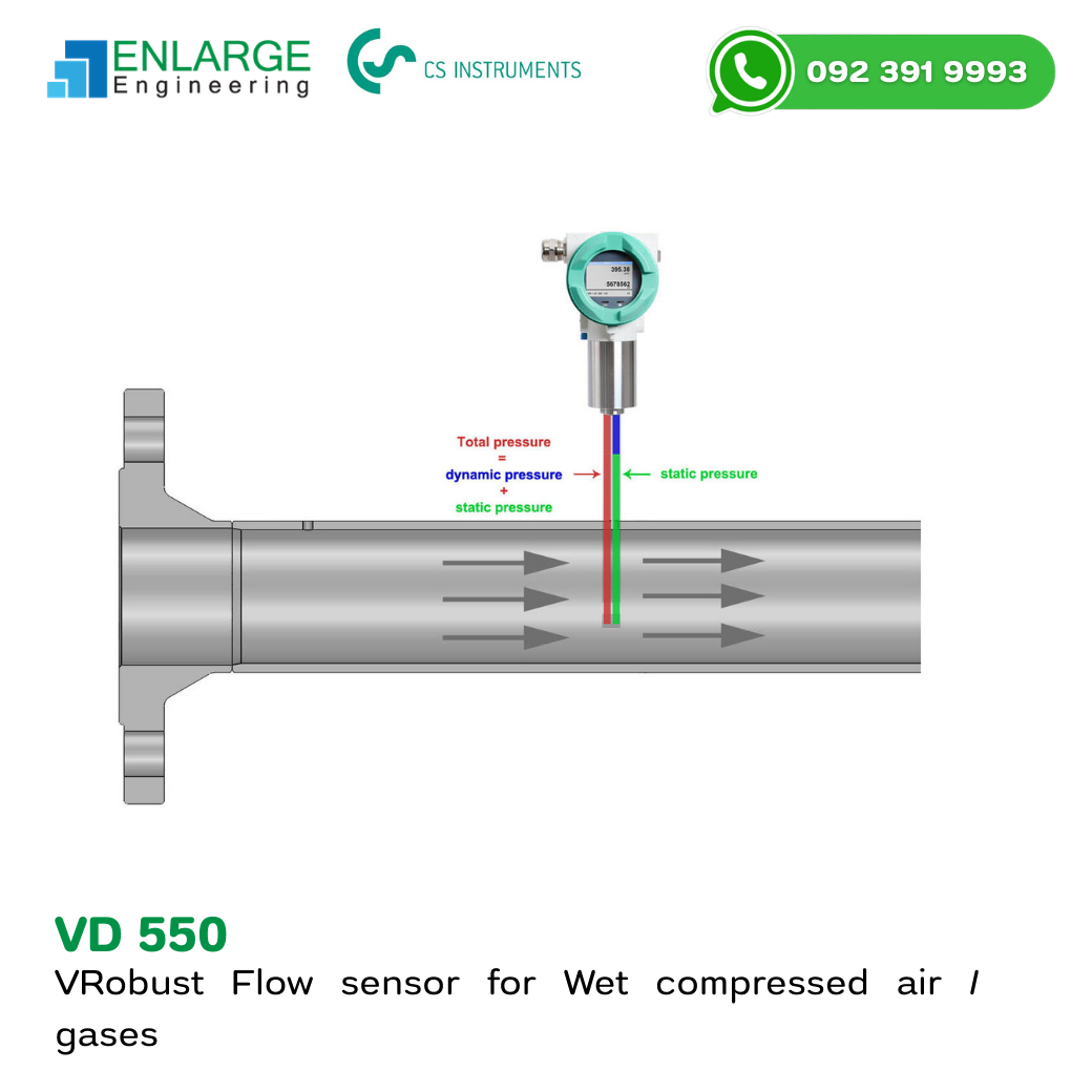 CS Instruments VD 550 Flow sensor เป็น Flow Sensor แบบ Thermal Mass ที่ออกแบบมาโดยเฉพาะสำหรับ ลมอัดแบบเปียก (Wet Compressed Air) ซึ่งมีความชื้นหรือมีคอนเดนเสทหลงเหลืออยู่ในระบบ ต่างจาก Flow Meter ทั่วไปที่ออกแบบมาสำหรับลมแห้ง VD550 ถูกพัฒนาให้สามารถวัดอัตราการไหลได้อย่างแม่นยำ แม้ในสภาวะที่มีน้ำหรือไอน้ำปะปนในระบบ